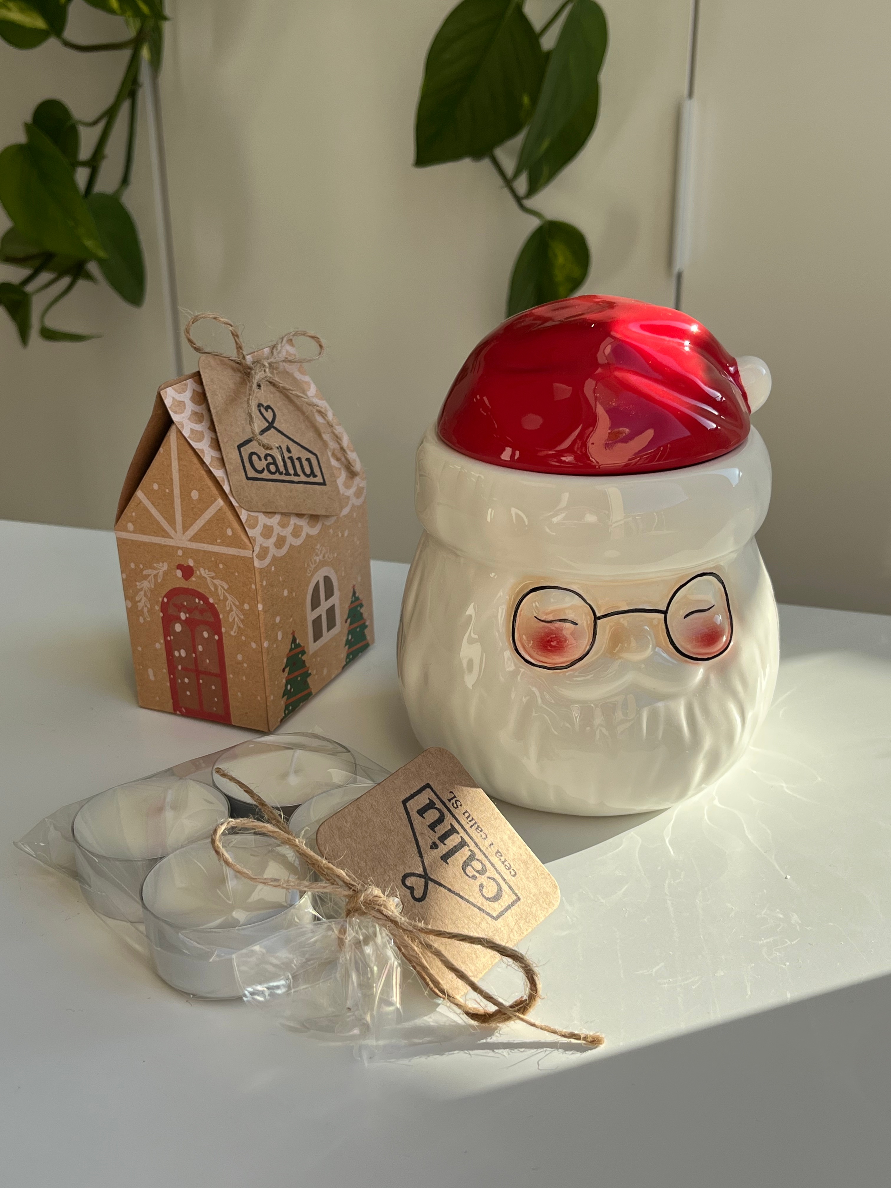 Incluye: Quemador, 4 velas de té, paquete de 50g de wax melts a escoger (55h de duración aprox) y un paquete de cerillas Caliu de regalo.