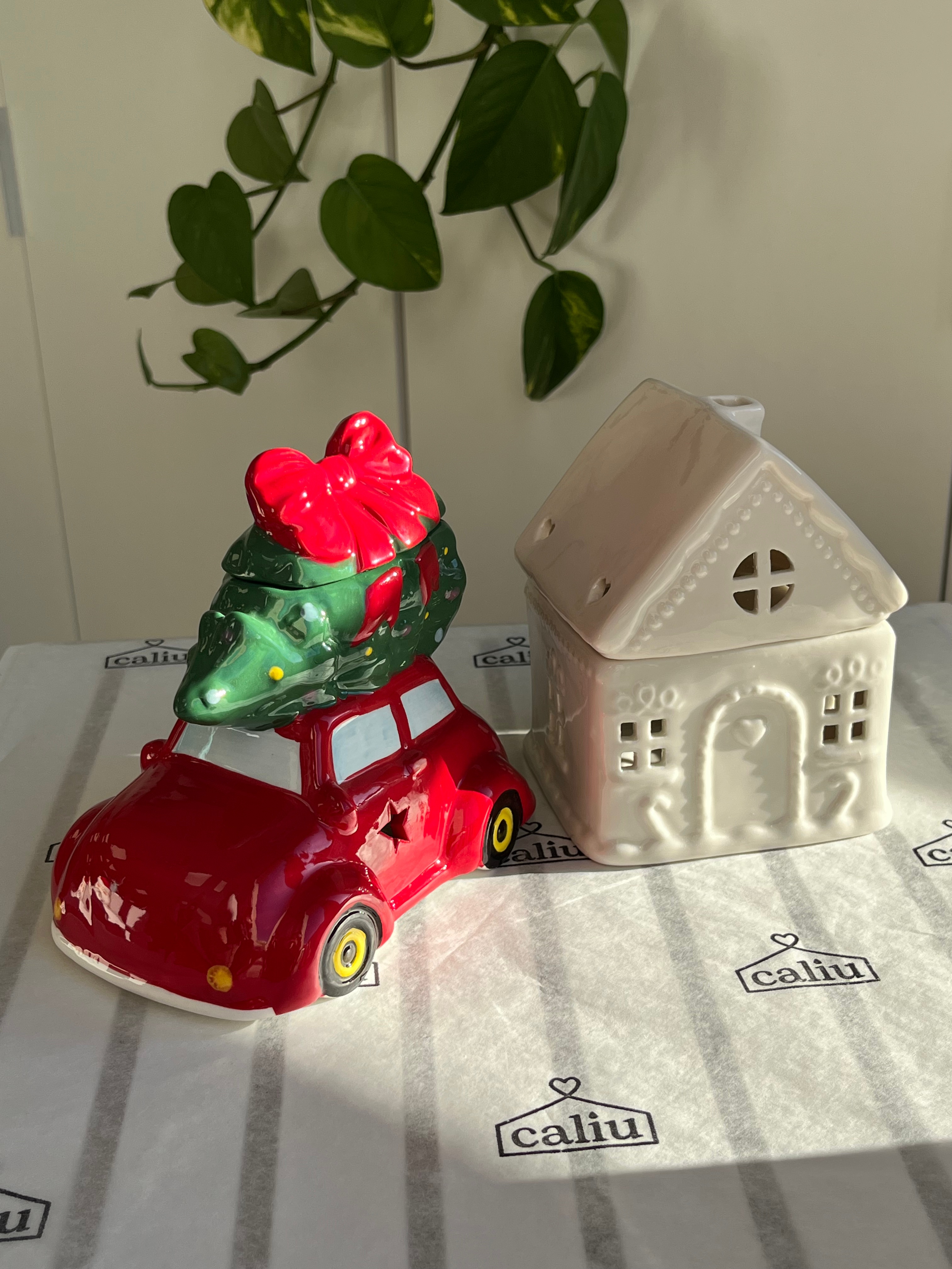 🚗🎄 Quemador de Esencias Coche Rojo con Árbol de Navidad