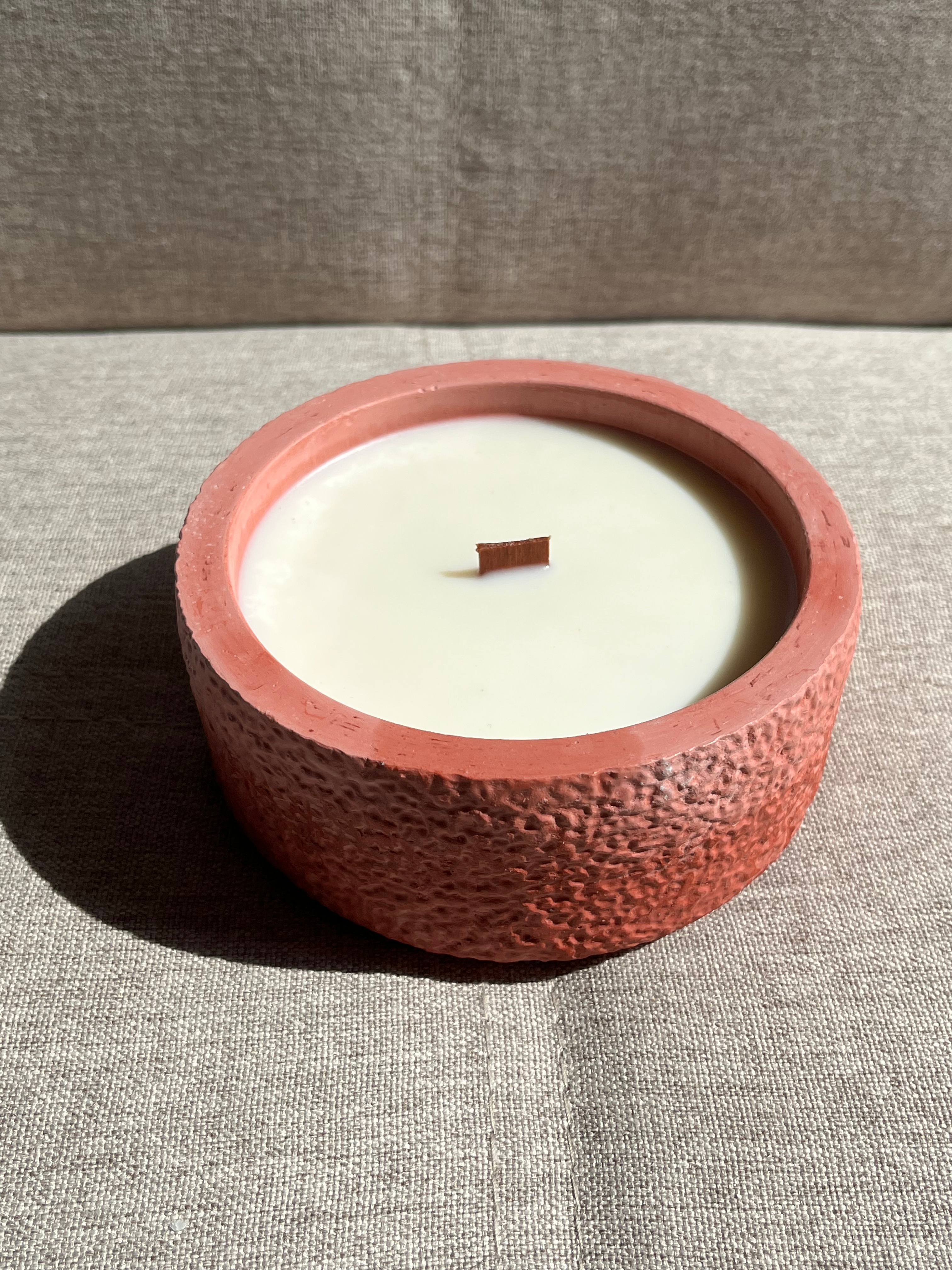 Pieza única. Versión roja, con pabilo de madera y aroma a Coco y Karité.