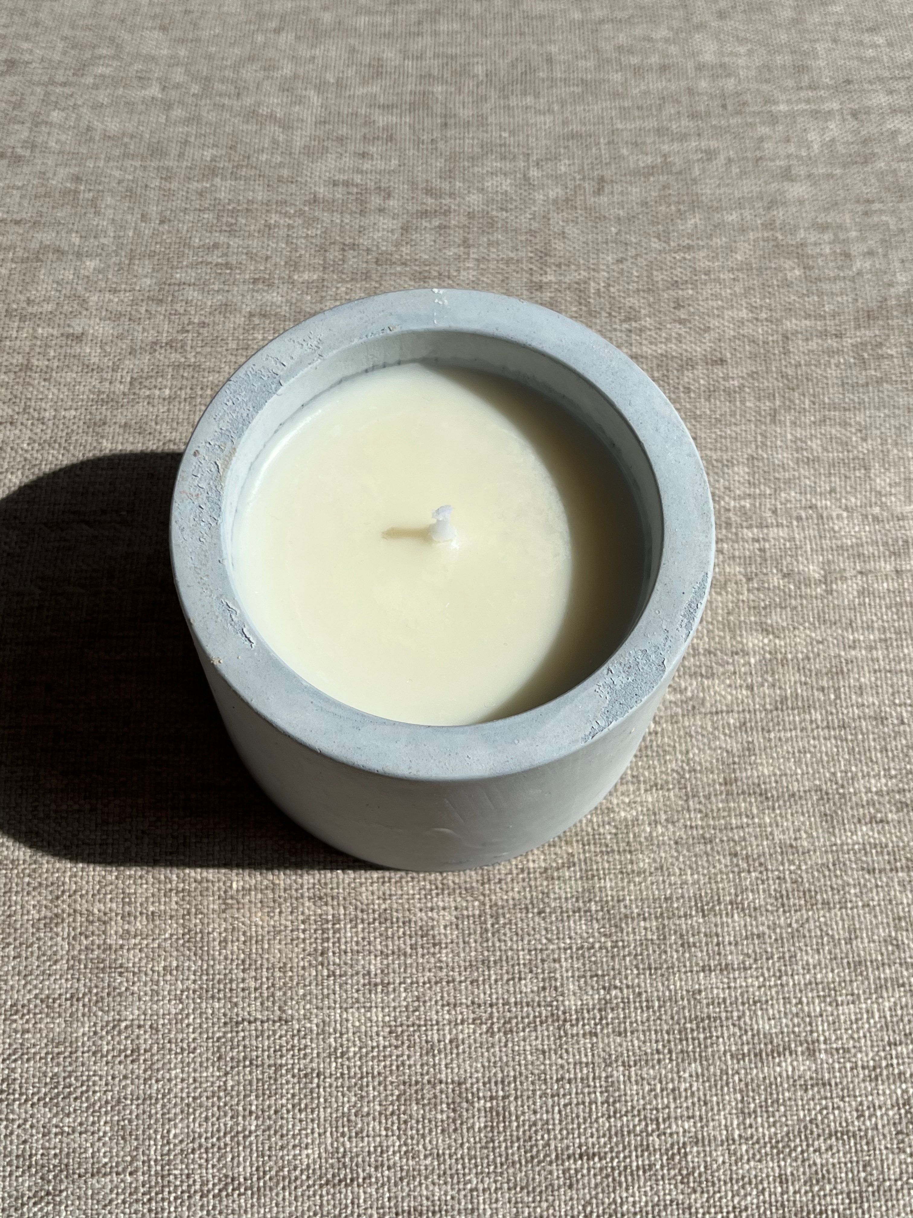 Vela redonda con aroma de Coco y Karité, pieza única.