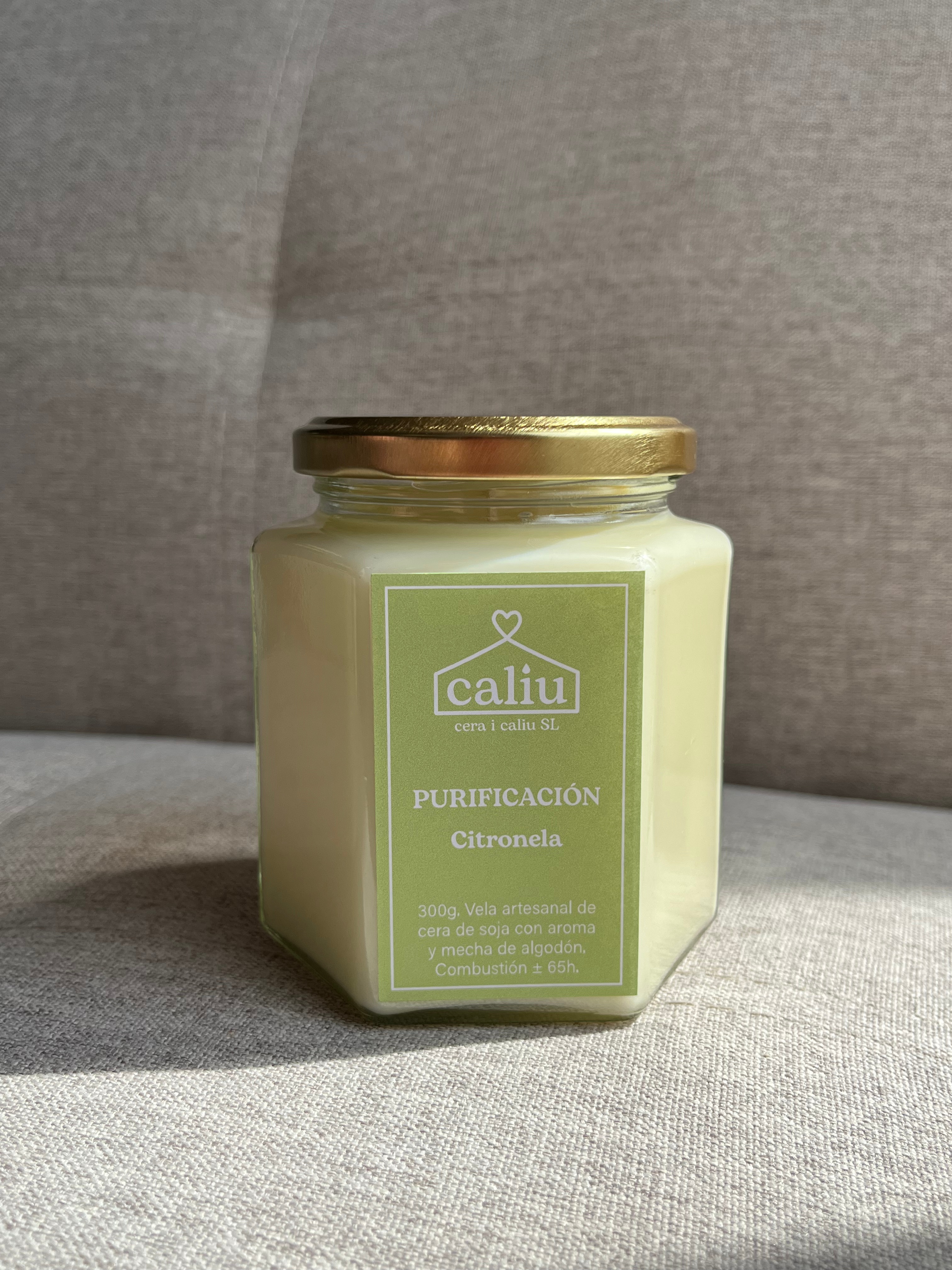 La vela Purificación está creada para limpiar, despejar y renovar. Su fragancia de citronela es fresca, cítrica y vibrante, con notas verdes que recuerdan a la hierba recién cortada y a un amanecer de verano en la naturaleza. Es un aroma que no solo perfuma, sino que transforma el aire, creando una atmósfera ligera y revitalizante.