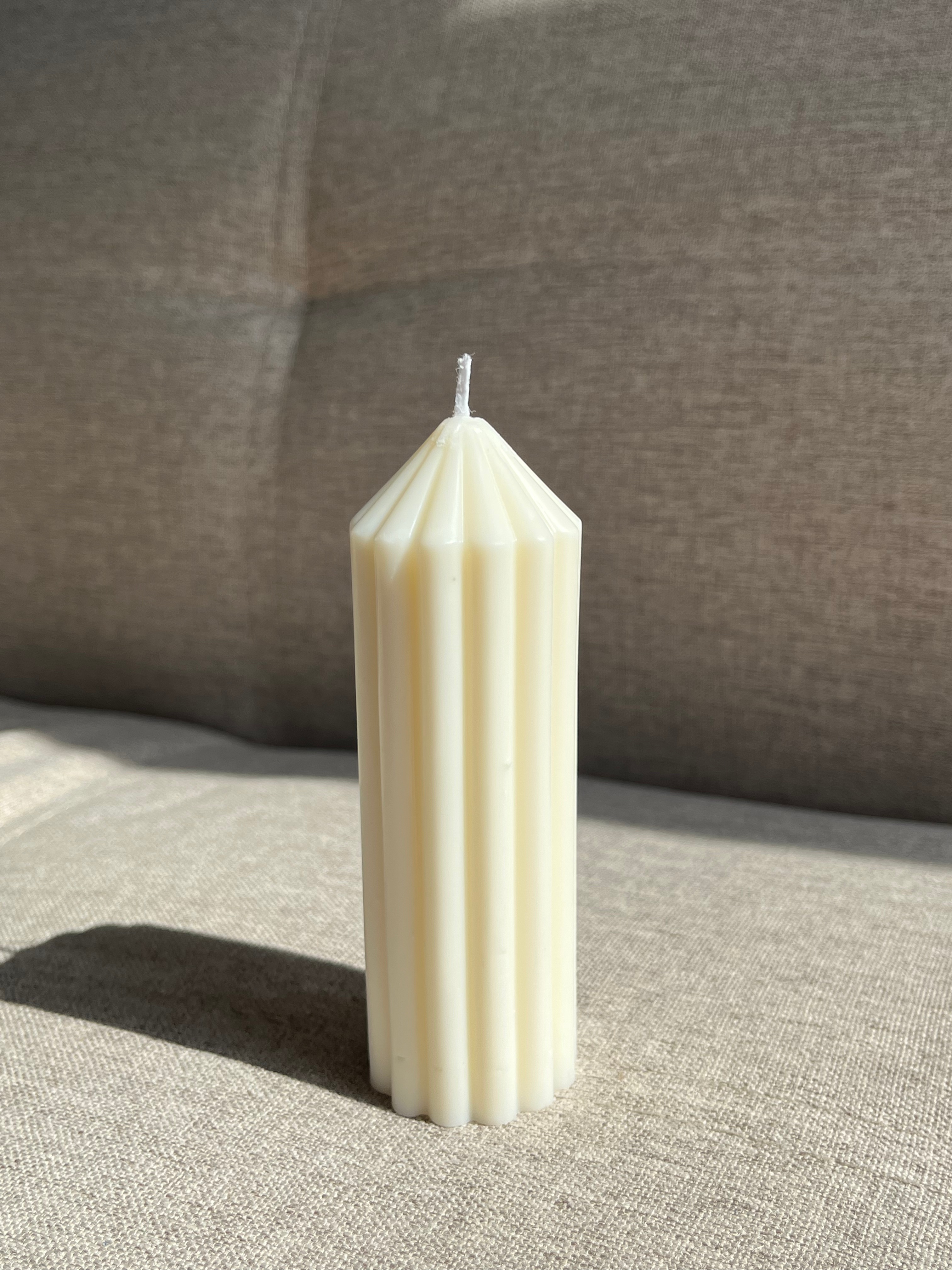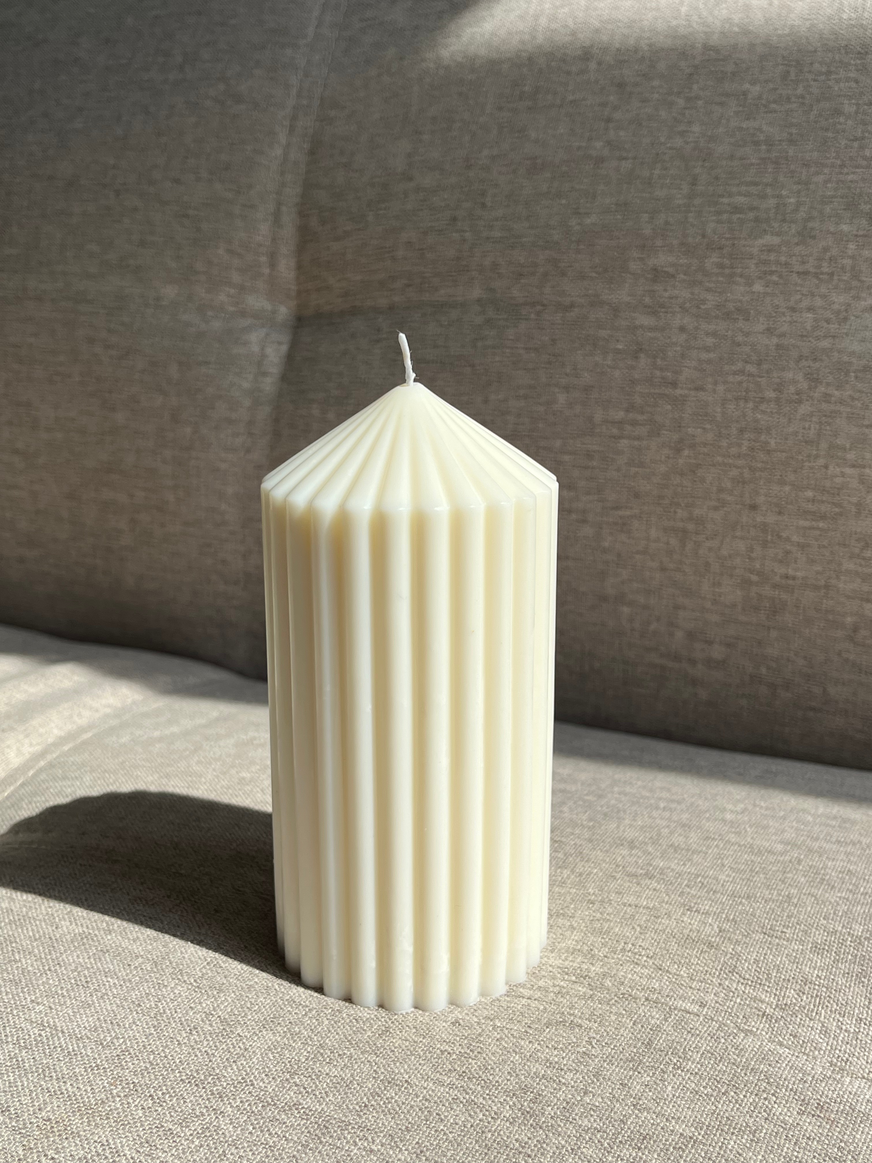Las velas Rayadas blancas son piezas decorativas elegantes y atemporales, hechas a mano con cera de soja 100 % sostenible. Su diseño en relieve con líneas verticales aporta textura, modernidad y un toque sofisticado a cualquier espacio, convirtiéndolas en un elemento ideal tanto para decoración como para pequeños rituales de luz y bienestar.